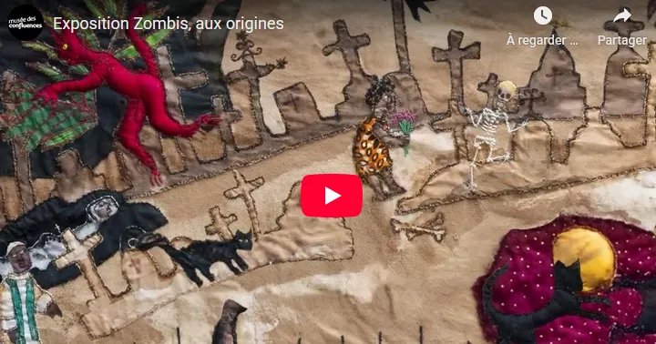 " Au-delà de l’imaginaire des morts-vivants contagieux du cinéma et de la pop culture, l'exposition vous emmène en Haïti sur les traces du mythe. On y trouve, en marge de la culture vaudou, le zombi, un criminel non repenti jugé par une société secrète et condamné à une fin pire que la mort. Cette figure prend ses origines dans une association complexe entre religions d’Afrique subsaharienne, cultures des populations autochtones caraïbéennes et traumatismes engendrés par l’esclavage. Découvrez l'histoire de ces croyances méconnues, toujours bien vivantes aujourd’hui. "