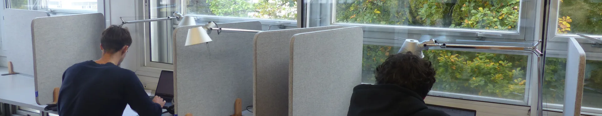 La bibliothèque Michel Serres met à votre disposition des cloisons de table anti-bruit, côté forêt, pour vous permettre de vous concentrer sur votre travail.